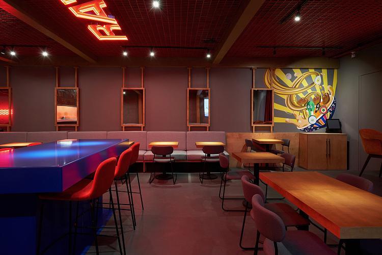 На первом этаже — сердце проекта: рамен-бар RA’MEN и особая ичираку-комната в духе вселенной Наруто. Здесь можно будет проводить кулинарные мастер-классы, private ужины в формате chef’s table или собираться большой компанией за длинным столом.