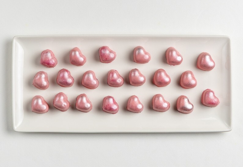 - Всех гостей ждёт милый комплимент в виде розового мармеладного сердца, покрытого шоколадом.