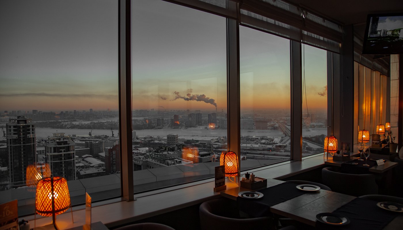 Приглушенный свет, звуки саксофона от Ростислава Ковалева, бокал любимого напитка и весь город у ваших ног.