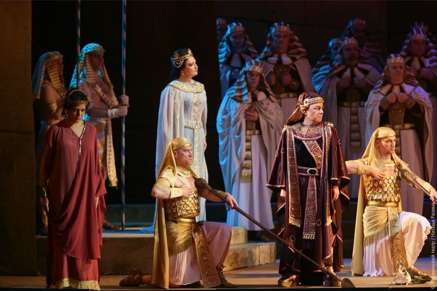 Постановка Алексея Степанюка воспевает роскошь и величие древнего Египта: богатые костюмы, величественные декорации, храмовые ритуалы и грандиозные хоровые сцены переносят зрителей в эпоху фараонов. Этот спектакль — погружение в мир большого оперного стиля, который в наше время становится редкостью.
