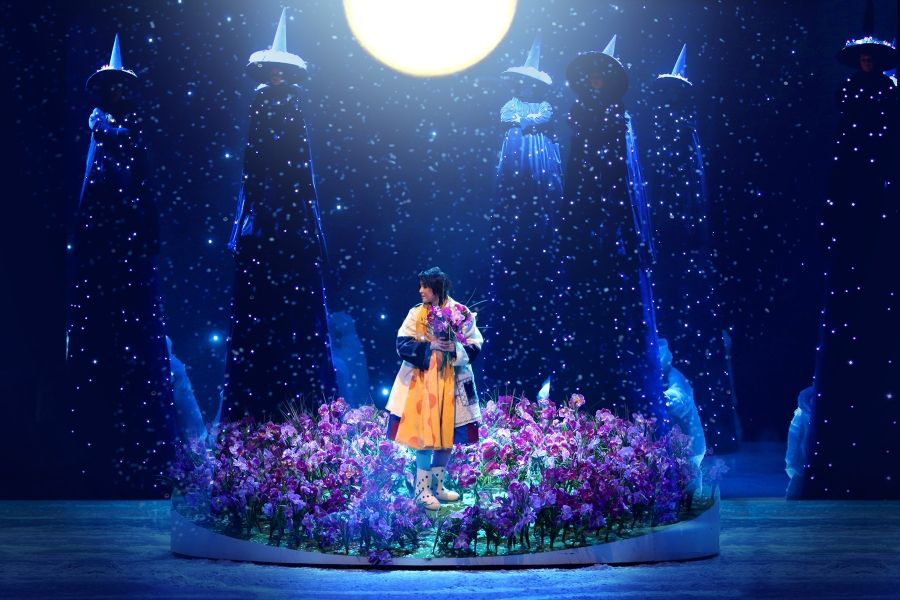 Либретто написано самим композитором по мотивам сказки о двенадцати месяцах и русских народных сказок. При этом границы между пространством, где совершаются чудесные превращения, и повседневностью весьма условны. В предновогодней суете герои стараются завершить дела — совсем как случайные прохожие на Невском проспекте 31 декабря. А в это время над заснеженным лесом, в который превращается сцена, восходит огромная луна и появляются двенадцать месяцев-великанов. Их выразительные силуэты — одна из самых ярких деталей спектакля.