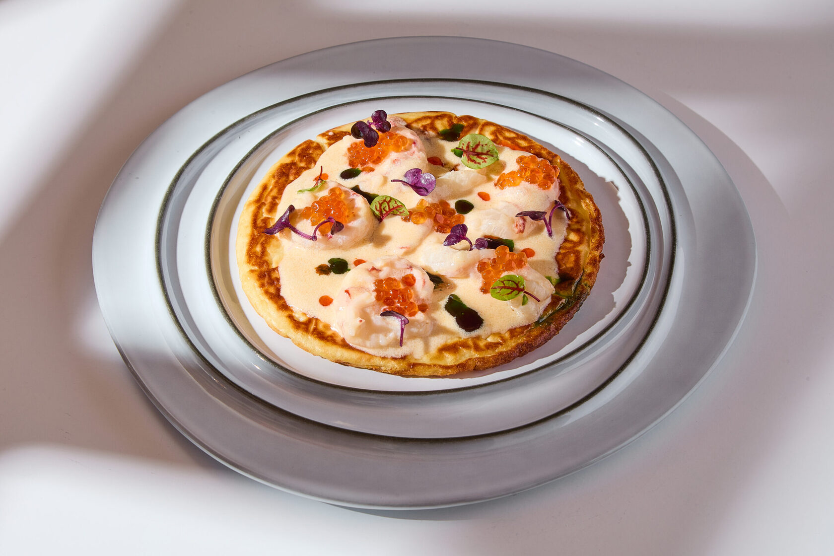 В ресторане, посвященном морепродуктам и рыбе, именно эти ингредиенты солируют даже в блинном меню. Оно состоит из семи аппетитных вариаций, каждая со своей оригинальной подачей и заглавным ингредиентом.