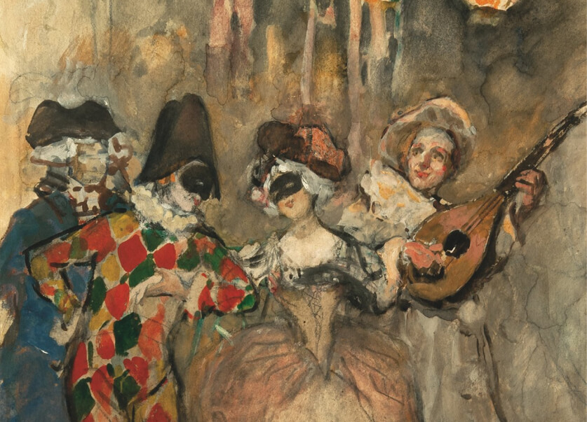 Пышные вечера и подготовка к ним будоражили воображение модников и модниц разных эпох. Дамы и господа на время забывали о своих чинах, перевоплощаясь в античных богов и героев романов, средневековых рыцарей и маркиз галантного века. С их легкой руки маскарадная мода проникла и в изобразительное искусство: изысканные и полушутливые, пестрые и зрелищные образы заслуживали остаться запечатленными в жанровых сценках и на портретах, которые сами нередко становились вдохновением для эффектного костюма. Зачастую оформлением праздников и постановок занимались ведущие живописцы эпохи, которые сами не прочь были примерить маскарадные маски для костюмированных вечеров в Академии художеств.