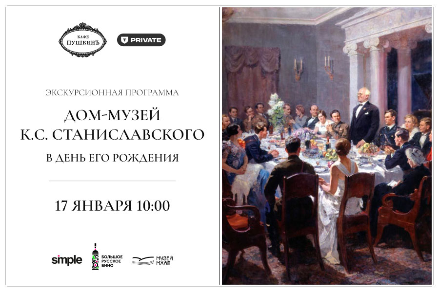 В этот день состоится экскурсионная программа в дом-музей Константина Сергеевича Станиславского с завтраком в ресторане «Кафе Пушкинъ».