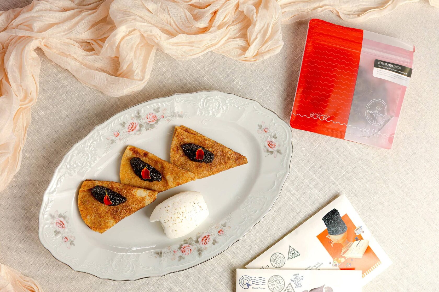 - Блины на пиве с черной икрой предлагают с «Перфект Рашн», классическим черным чаем с узбекским лимоном;